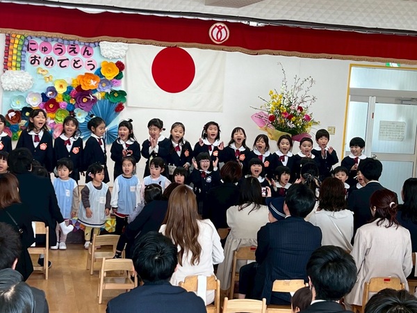 無事に19名の新入園児をお迎えしました。 昨日の雨とうってかわって良い天気に恵まれ、園庭に咲く桜もお祝いするかのように綺麗に咲いてくれました🌸 式では在園児のお友だちも元気な歌声を披露し、新しい年度の始まりに期待に胸を膨らませているようでした! |